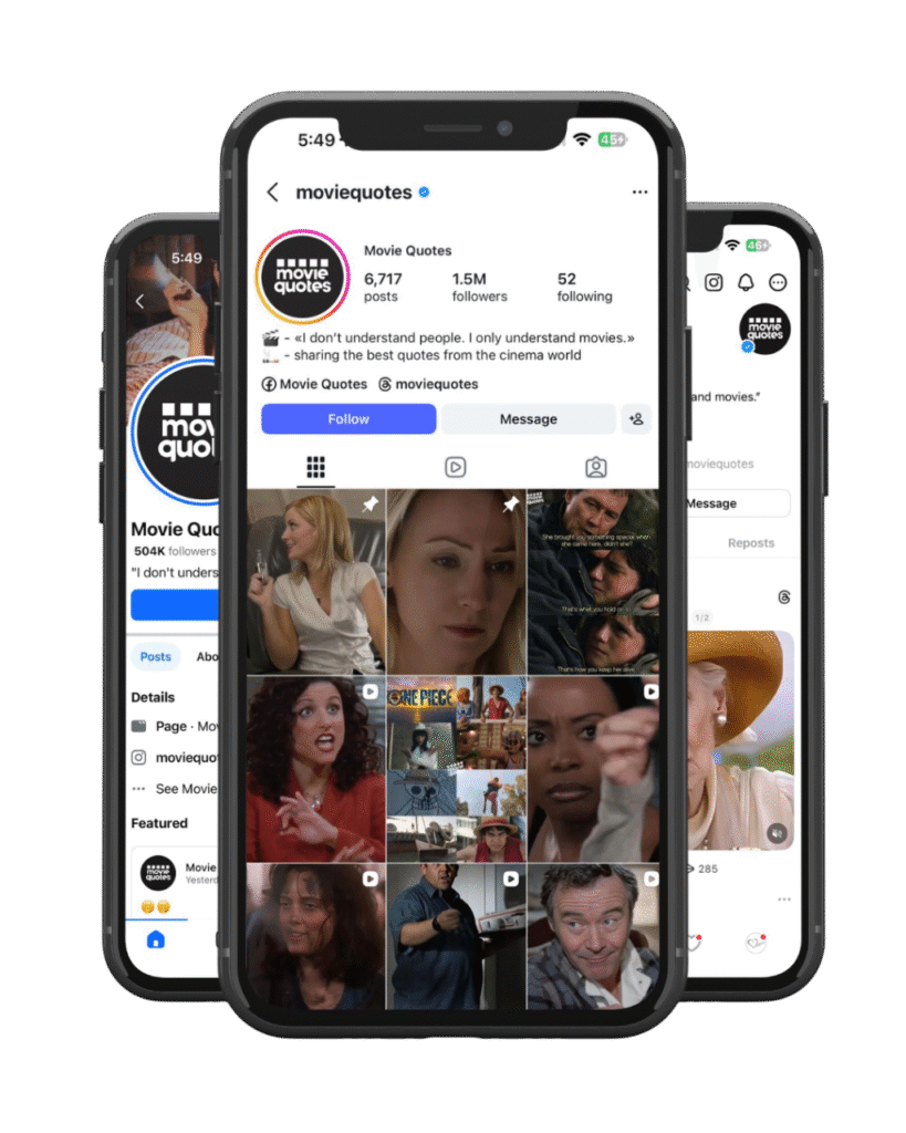 With a community of over 1.5 million followers, born from the experience of Love Quotes, we share quotes from films that have marked generations, inviting the audience to reflect, get emotional, and maybe discover new stories to watch or rewatch. Each post is a journey through emotions and screenplays that have left their mark.